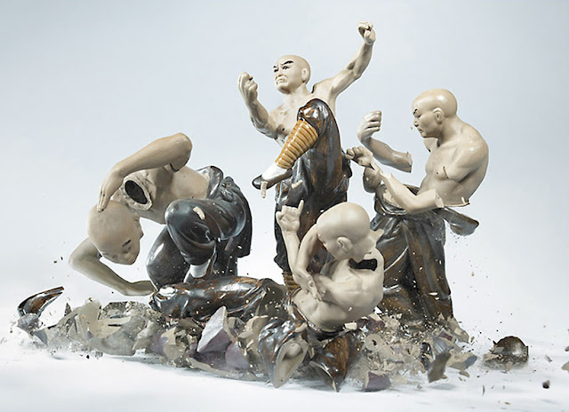 Martin Klimas, seorang photographer German, mencipta sejenis series of 'porcelain figurines'. Apa yang beliau lakukan adalah menjatuhkan action figures dengan ketinggian 9.8 kaki sambil mengambil gambar disaat action figure tersebut mencecah lantai. Martin melakukan modifikasi terhadap kamera beliau dimana apabila bunyi pecahan porcelain dari action figure kedengaran, secara automatiknya kamera beliau akan mengaktifkan shutter mode lalu terhasillah seni yang siot ini.